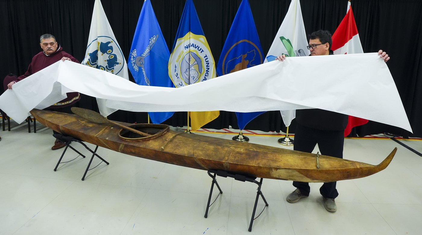 OTTAWA — Un kayak inuvialuit vieux de plus d'un siècle a été dévoilé mardi au Musée canadien de l'histoire à Gatineau en même temps que plusieurs autres objets inuits inestimables restitués au Canada par la collection du Vatican.