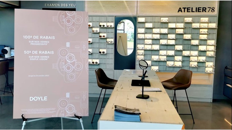 Située dans un local entièrement vitré qui laisse entrer les rayons du soleil à l'intérieur, la Lunetterie Doyle propose un concept novateur sur bien des plans. D'abord sur celui de la gestion alors que l'entreprise est la copropriété de Patrick Doyle, mais aussi des optométristes associées Marine Pignot et Thuy-Anh Duong. Ensuite, dans son approche du service client et la redéfinition du face-à-face avec le consommateur.