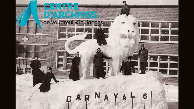 Certaines écoles organisaient elles aussi des carnavals durant lesquels les concours de sculptures de neige prenaient place. On en a un exemple avec l’école Saint-Michel de Vaudreuil qui accueillait les élèves de niveau secondaire dans les années 1950 et 1960. Il était appelé le Festival de St-Michel comme on peut le voir dans l’édition du 30 janvier 1958 du journal L’Écho. Il avait lieu la fin de semaine. Au programme, courses, jeux et parties de ballon-balai avaient lieu devant des milliers de spectateurs selon ce qui est rapporté dans l’article. Ont également eu lieu des « évolutions sur glace ». Et des Mademoiselles et un Monsieur Festival étaient couronnés pour l’occasion. Mais avant le Festival, d’immenses sculptures de neige et de glace étaient créées et représentaient particulièrement le monde animalier. Elles étaient façonnées et prenaient place à l’avant de l’école afin que tous les passants puissent les apercevoir.