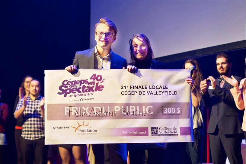 Le Prix du public, accompagné d’une bourse de 300 $ remis par la Fondation du Collège de Valleyfield, a pour sa part, couronné de succès le numéro d’interprétation au chant de Félix-Antoine Boucher. L’étudiant en Tremplin DEC et originaire de Salaberry-de-Valleyfield, a interprété deux morceaux du groupe Offenbach, La voix que j’ai et Câline de blues.