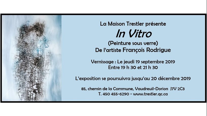 Dès le 19 septembre, trois nouvelles expositions seront présentées à la Maison Trestler et le public est invité à assister au vernissage qui se tiendra de 19 h 30 à 21 h 30, le 19 septembre.