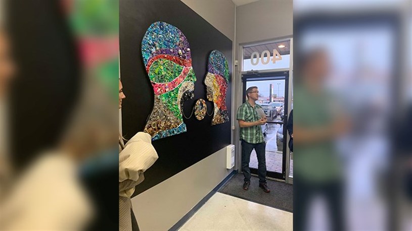 L'artiste mosaïste, Monica Brinkman a profité de la soirée pour remettre à l'organisation, une oeuvre collective créée avec le comité de la Semaine de la santé mentale.
