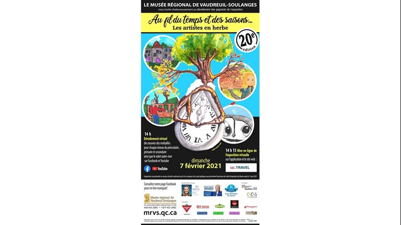 Ce dimanche 7 février, le Musée régional de Vaudreuil-Soulanges présentera virtuellement la 20e édition du concours, Les artistes en herbe. C’est sous le thème Au fil du temps et des saisons que les étudiants ont été invités à créer et à laisser aller leur imagination.