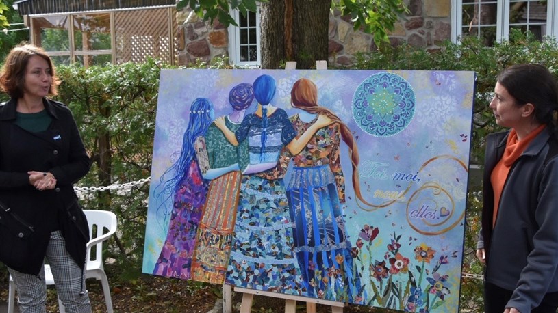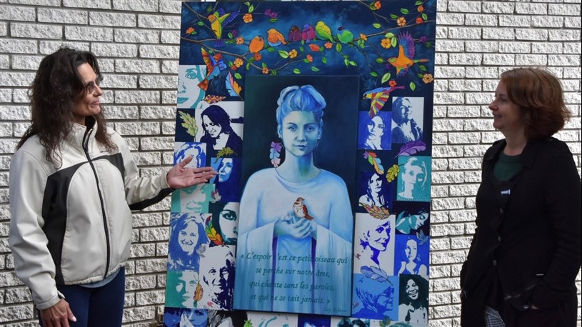 « C’est vrai qu’ensemble, les femmes, on peut faire beaucoup de choses. Il ne faut pas arrêter, il faut continuer de se battre et c’est ce que ça représente, l’espoir, l’espoir pour tout le monde », témoigne Lyne Collette, coordonnatrice chez La Sortie, en regardant la toile.