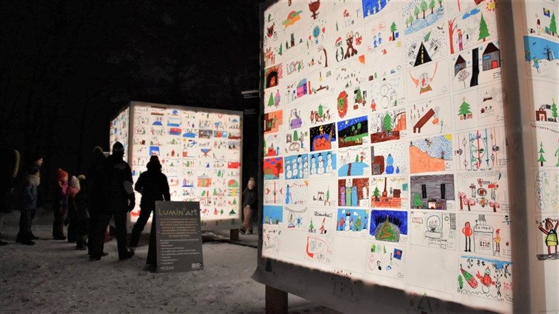 Si tout semble tourner autour du chiffre 10, détrompez-vous. Deux lanternes, disposées au bout d'un corridor de globes lumineux, regroupent 700 dessins d’élèves des écoles primaires, Brind’Amour, l’Hymne-au-Printemps, Papillon-Bleu, Harwood, Sainte-Madeleine et Saint-Michel.