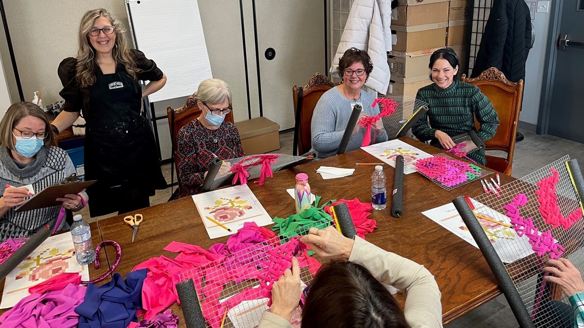 « Ç’a été un projet quand même assez long. Le point de croix n’est pas si simple que ça. Par contre ce qui était vraiment bien et qui ajoute une touche encore plus spéciale à l’oeuvre c’est le fait que nous ne finissions jamais notre section. À la fin de chaque atelier, un autre participant prenait le relai, là où nous nous étions arrêtés. C’est donc vraiment une oeuvre collective », ajoute Andréanne Poulin-Lavigne, coordonnatrice aux événements à L’Actuel.