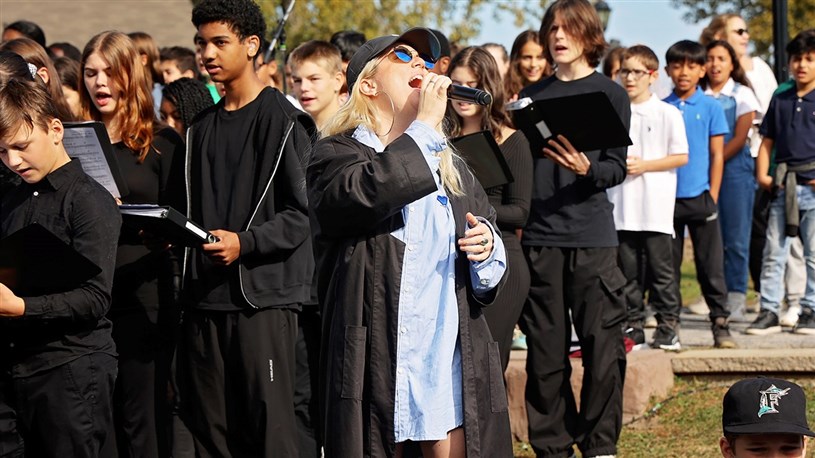 « Dans ma vie, j'ai eu la chance de chanter avec une harmonie et j'ai ressenti le frisson collectif de créer de la musique, de vivre la musique. Comme enseignante de musique, c'est ça que je veux faire vivre », a-t-elle souligné en s'adressant aux jeunes étudiants.