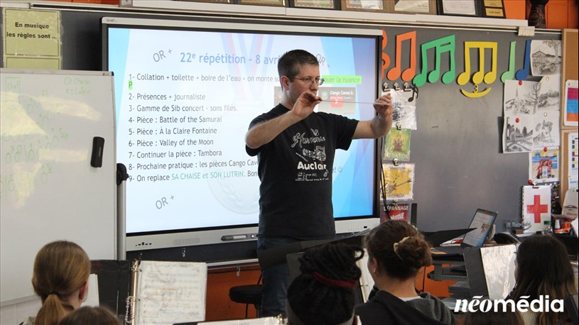 Marc-André Decelles, enseignant de musique à l'école Auclair depuis neuf ans, dirige les harmonies parascolaires de l'établissement depuis huit ans. Il espère épater les deux juges du concours et obtenir, avec son groupe d'élèves motivés, la mention or.