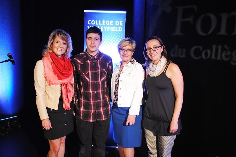 Lynda Archambault, initiatrice de la bourse; Joël Lupien, boursier; Manon Murphy, présidente de la Fondation et Mireille Théorêt, directrice de la Fondation du Collège de Valleyfield.