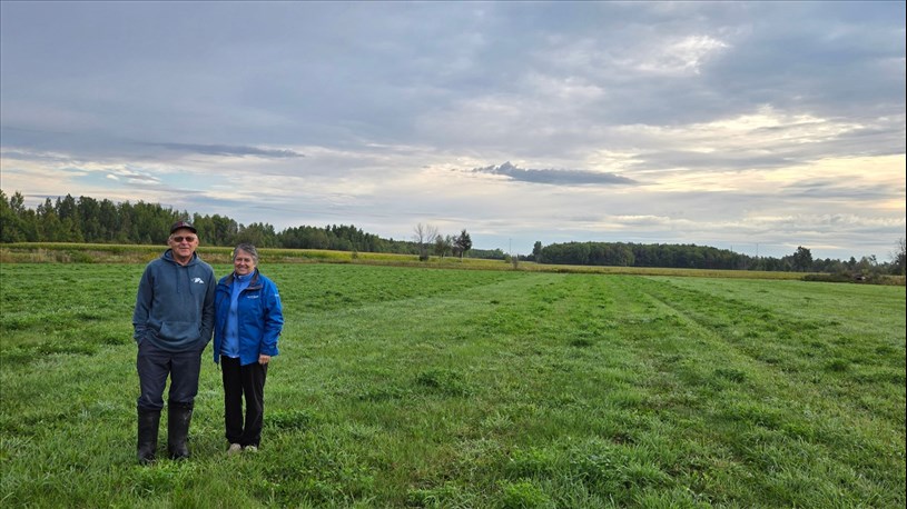« À date, on a fauché à trois reprises nos champs. Pour la portion associée au projet, on a fait seulement deux fauches afin de permettre aux oiseaux de faire leur nidification sans être perturbés par nos opérations. La deuxième fauche a eu lieu récemment en septembre. En plus de cultiver du foin, notre ferme produit aussi du soya, du maïs et du blé. On a aussi une trentaine de vaches qui sont destinées à la boucherie, ce qui signifie qu'on ne les trait pas », indique-t-il.