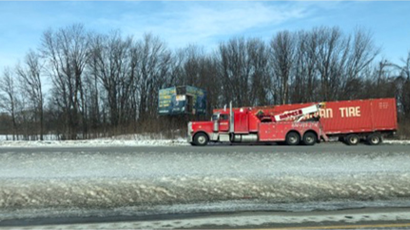 Vers 8h15 ce matin, en bordure de l’autoroute 20 Ouest à Coteau-du-Lac, on pouvait remarquer une remorque aux couleurs de l’entreprise Canadian Tire. Celle-ci a été laissé sur l’accotement au cours des dernières heures, un geste qui pourrait valoir un constat d’infraction à son propriétaire.