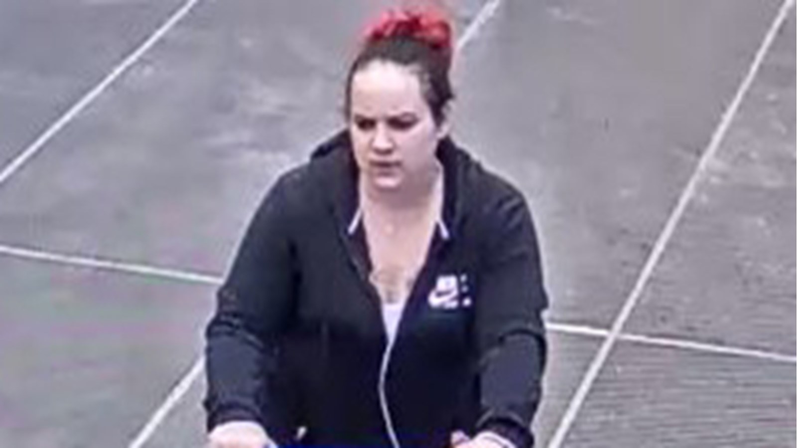 Suspecte 2 : femme âgée d’environ 45 ans, cheveux foncés avec mèches, environ 77 kg (170 livres) et elle porte des lunettes de vision ;