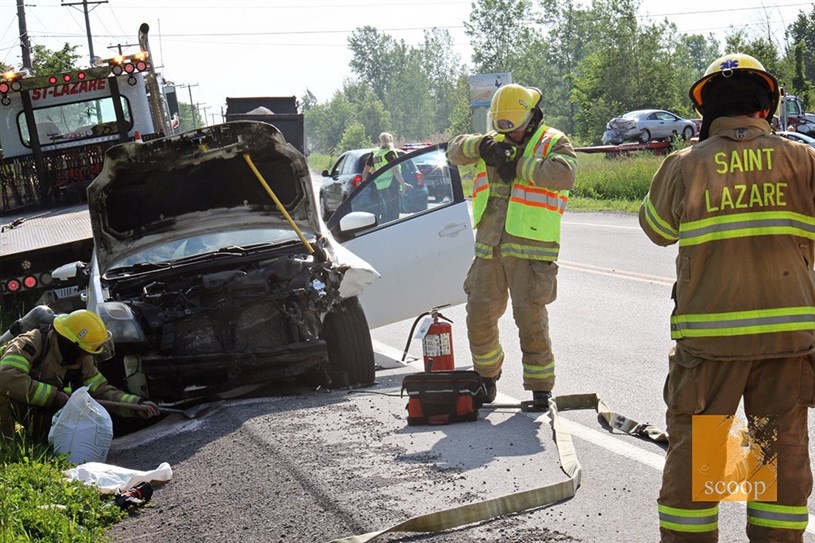 Peu après 17h, deux véhicules ont fait un face à face à l’intersection de Sainte-Angélique et de la Montée Bédard à Saint-Lazare.