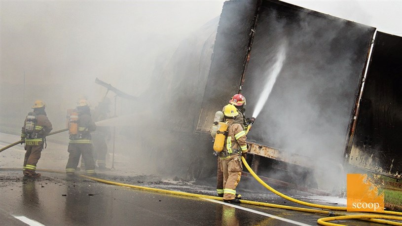 Au moment de mettre en ligne, les pompiers étaient toujours sur place, de même que les policiers de la Sûreté du Québec et une équipe du ministère des Transports.