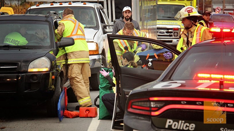 Une dame est transportée à l'hôpital suite à une collision à Saint-Lazare
