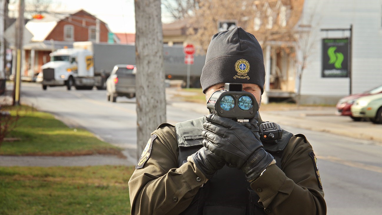 Lors du passage de Néomédia, l’agent, positionné stratégiquement pour faire en sorte d’être visible qu’à la dernière seconde, par les automobilistes, mesurait la vitesse, mais observait également le cellulaire au volant et le port de la ceinture de sécurité.