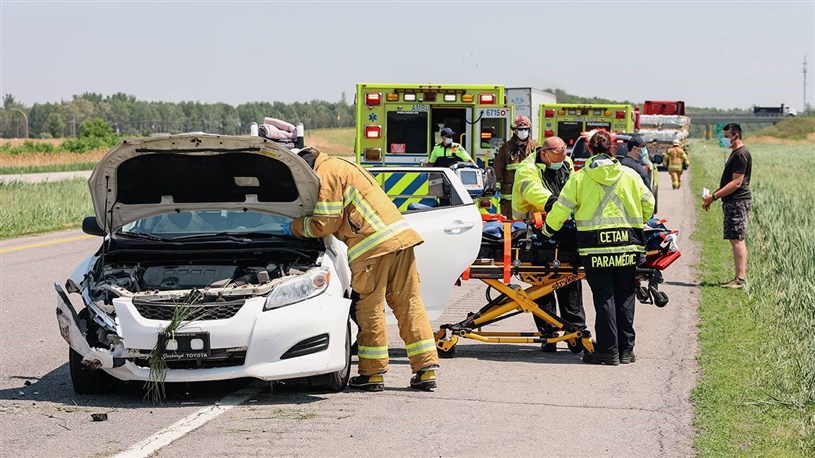 Une dame est conduite vers un centre hospitalier, après que le véhicule dans lequel elle prenait place, soit entré en collision avec un semi-remorque sur l’autoroute 20 est, à Saint-Zotique, ce lundi peu après 11h.