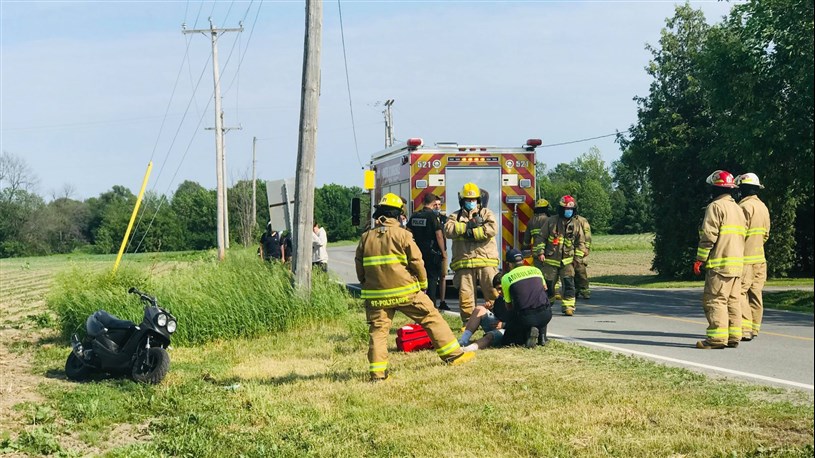 Un adolescent a été transporté vers un centre hospitalier après avoir perdu la maîtrise de son cyclomoteur, en fin de journée ce mardi, sur le chemin Élie-Auclair à Saint-Polycarpe.