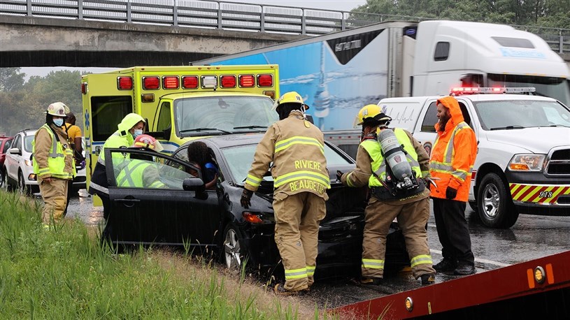 Aquaplanage sur l'autoroute 20 à Rivière-Beaudette