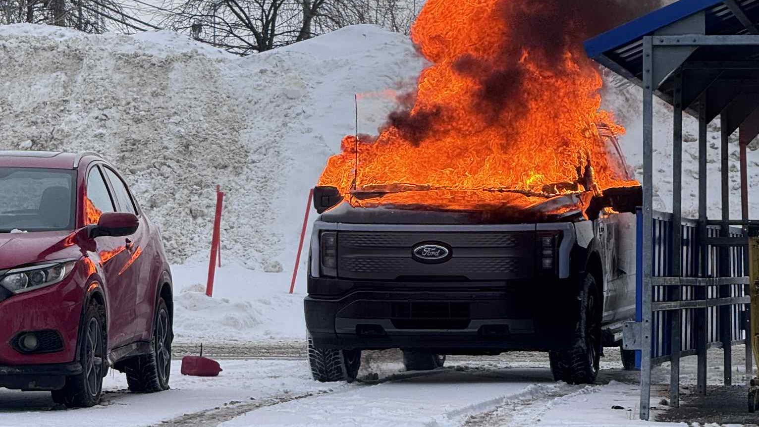 Notons que le Ford électrique noir touché par le brasier a été remorqué.