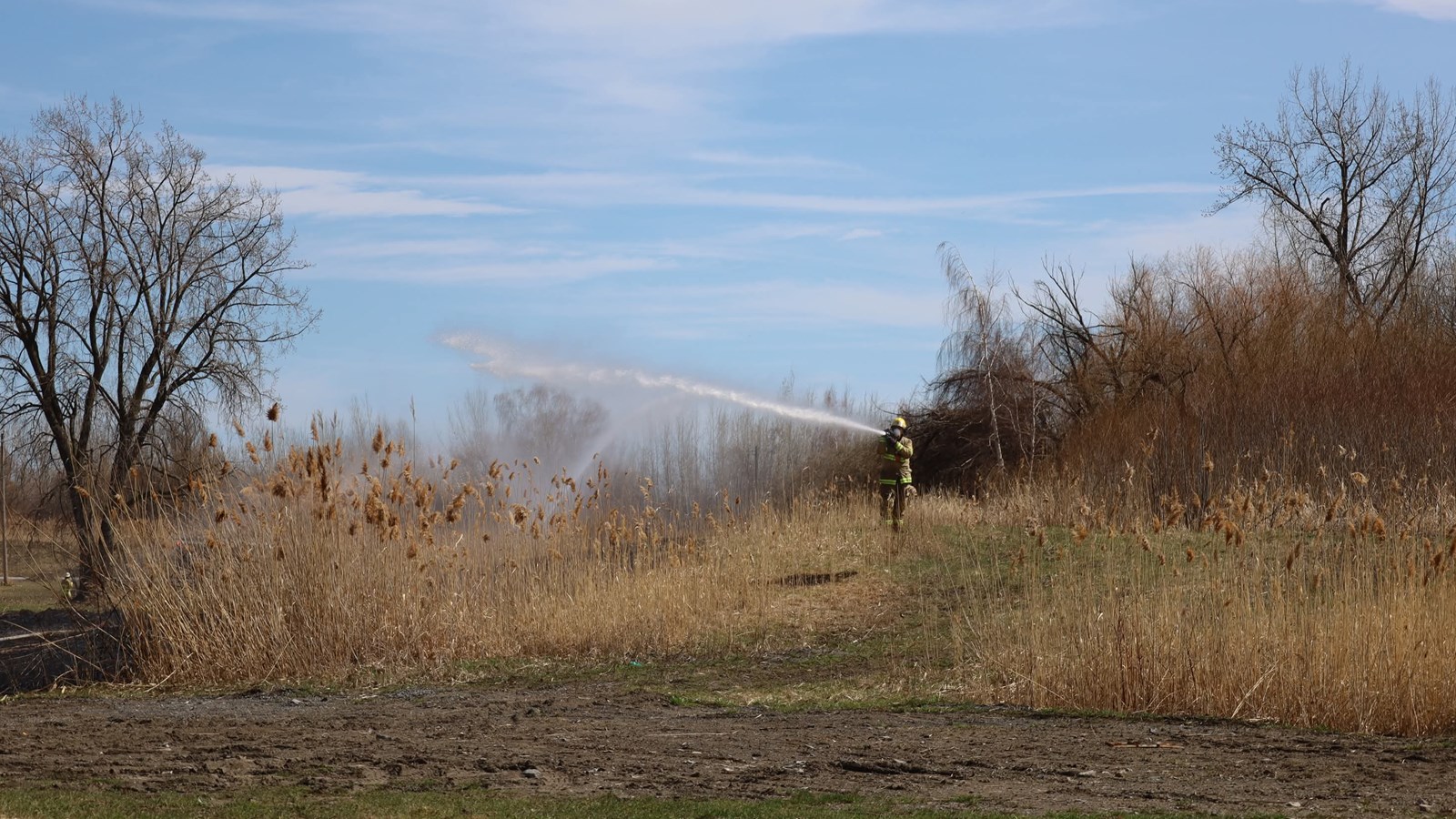 Une dizaine de sapeurs du service de sécurité incendie (SSI) sont rapidement intervenus pour maîtriser les flammes, qui s'étendaient sur une zone d’environ 50 pieds par 600, à une distance de 75 pieds des résidences. Le feu a été contenu en une trentaine de minutes, limitant ainsi les dommages.