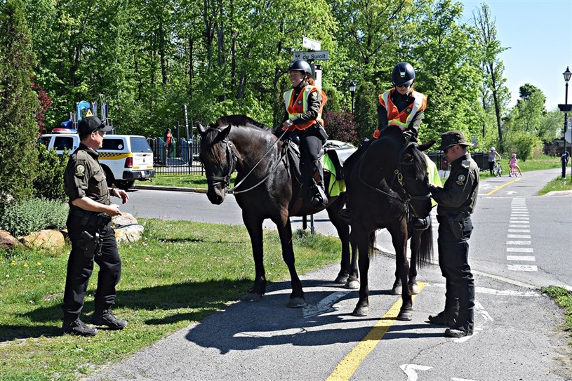 Sûreté du Québec mounted police officers participate in the search for Maurice Beauregard 82 and his dog in Pincourt on May 22 after they were reported missing the previous day.