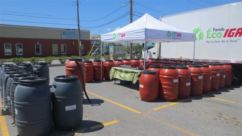 Dans le cadre du programme Clé en main, le Fonds Éco IGA distribuera encore une fois cette année 70 barils récupérateurs d’eau de pluie au coût de 30 $ (valeur de 85 $), par magasin.