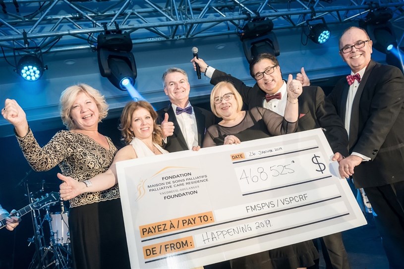 C'est la somme de 468 525 $ qui a été amassée lors de la 14e édition du Happening au profit de la Fondation de la Maison de soins palliatifs de Vaudreuil-Soulanges, à laquelle plus de 400 convives ont participé le samedi 26 janvier au Pavillon sur le Lac du Château Vaudreuil.  La présidence d’honneur de l’événement était assumée par M. Jocelyn Dame, président de Sanuvox Technologies.