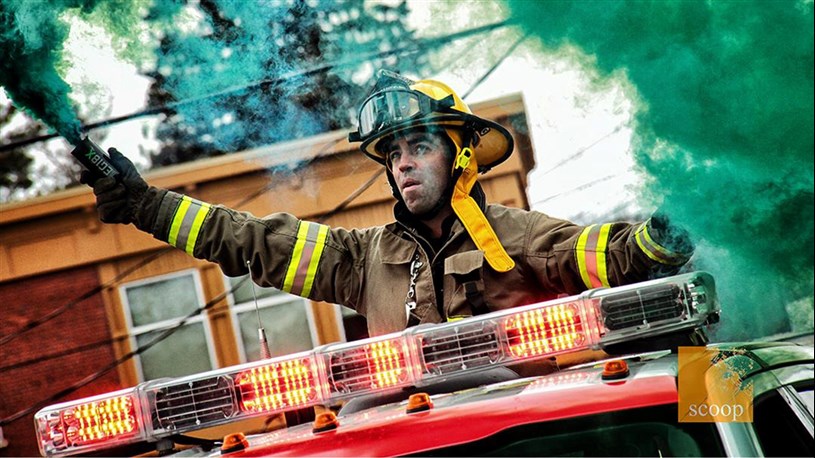 Une équipe des pompiers de Vaudreuil-Dorion accompagné du capitaine Yann Giasson.