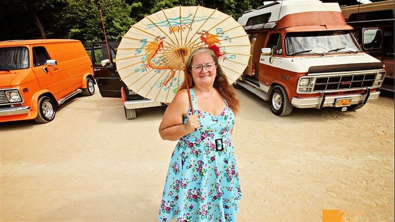 Parmi les visiteurs présents sur le terrain pour cette activité annuelle, on retrouvait Alex Bouchard de Saint-Hyacinthe. De son côté, Céline Marsolais est une citoyenne de Montréal qui passe ses hivers en Arizona. Elle prend la pose près de son Tiki Motel, une van GMC restaurée selon ses spécifications.