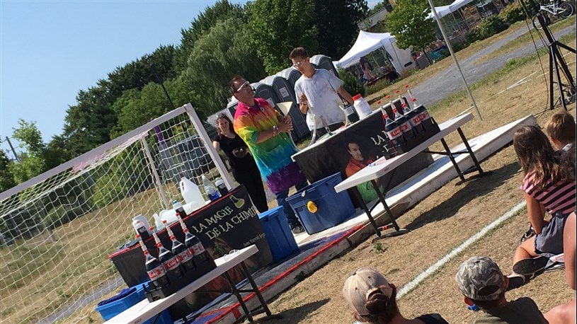 Enfin, le dimanche 4 août, des dizaines de familles ont pris part au brunch aux sons de la musique du Quatuor de saxophones et du duo de cor français de la Cité-des-Jeunes sous la supervision de Marc-André Thibault. À 14h, les tout-petits sont tombés sous le charme de Yannick Bergeron et son spectacle La Magie de la chimie.