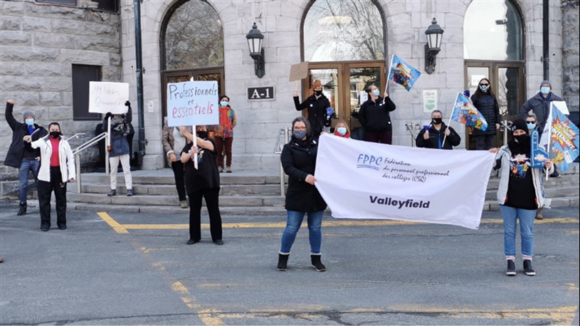 Comme prévu, une trentaine d'employés, membres du Syndicat des professionnels du Collège de Valleyfield ont tenu une première journée de grève, ce mardi.