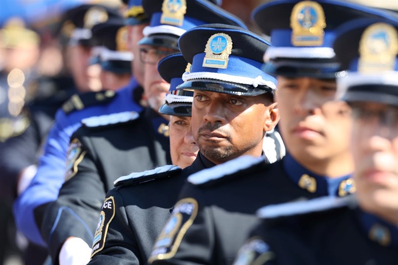 Comme le veut la tradition, les noms de tous les policiers décédés en service depuis la fin des années 1800 ont été prononcés, pour honorer leur mémoire. Par la suite le képi de ceux décédés durant année a été apporté sur un coussin.