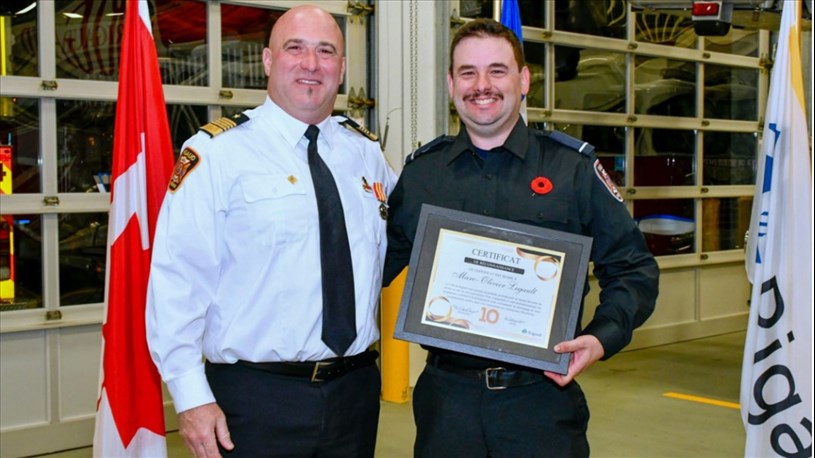 Marc-Olivier Legault a été honoré pour ses 10 ans de service