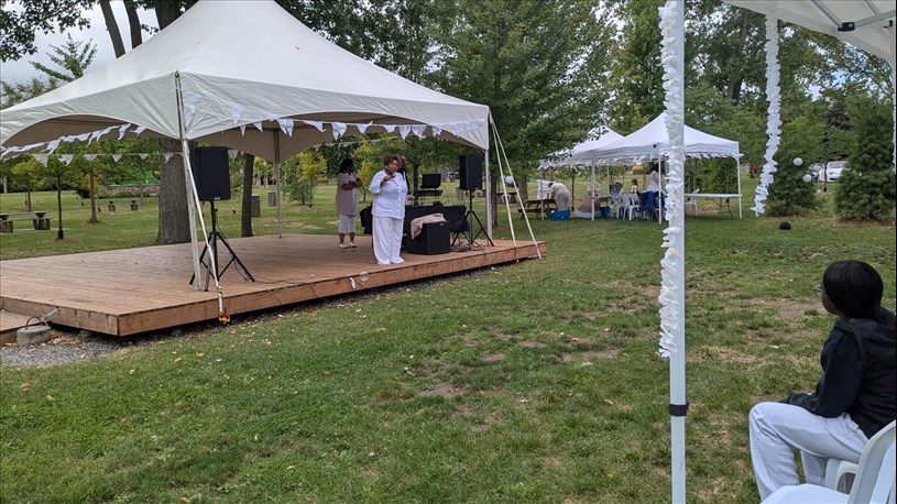 La directrice générale de l’Association des personnes d’origine africaine ou caribéenne (APOAC), Nathaly-Rmène Rousseau, n’a pas laissé le ciel gris qui régnait ce samedi après-midi gâcher le pique-nique en blanc de l’organisme. Celui-ci a pris place au parc de la Maison Valois de Vaudreuil-Dorion de midi à 15h.