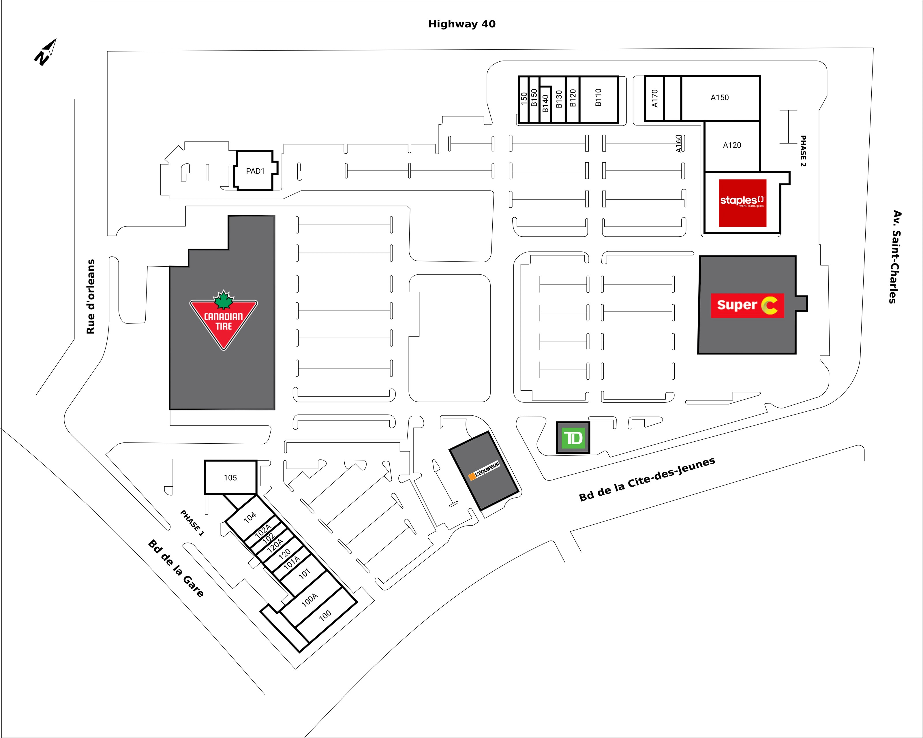 RioCan liste Shaker comme étant locataire actuelle du PAD1 dans son plan du centre commercial Vaudreuil