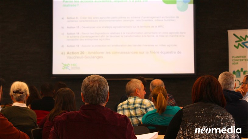 La salle communautaire de Saint-Clet accueillait, ce jeudi 13 novembre, un premier forum sur la révision du plan de développement du territoire agricole de la MRC de Vaudreuil-Soulanges. Une soixantaine de cultivateurs, d’agronomes, d’experts et d'élus de la région étaient ainsi réunis pour cibler les enjeux et élaborer une vision commune pour l’avenir des zones agricoles.
