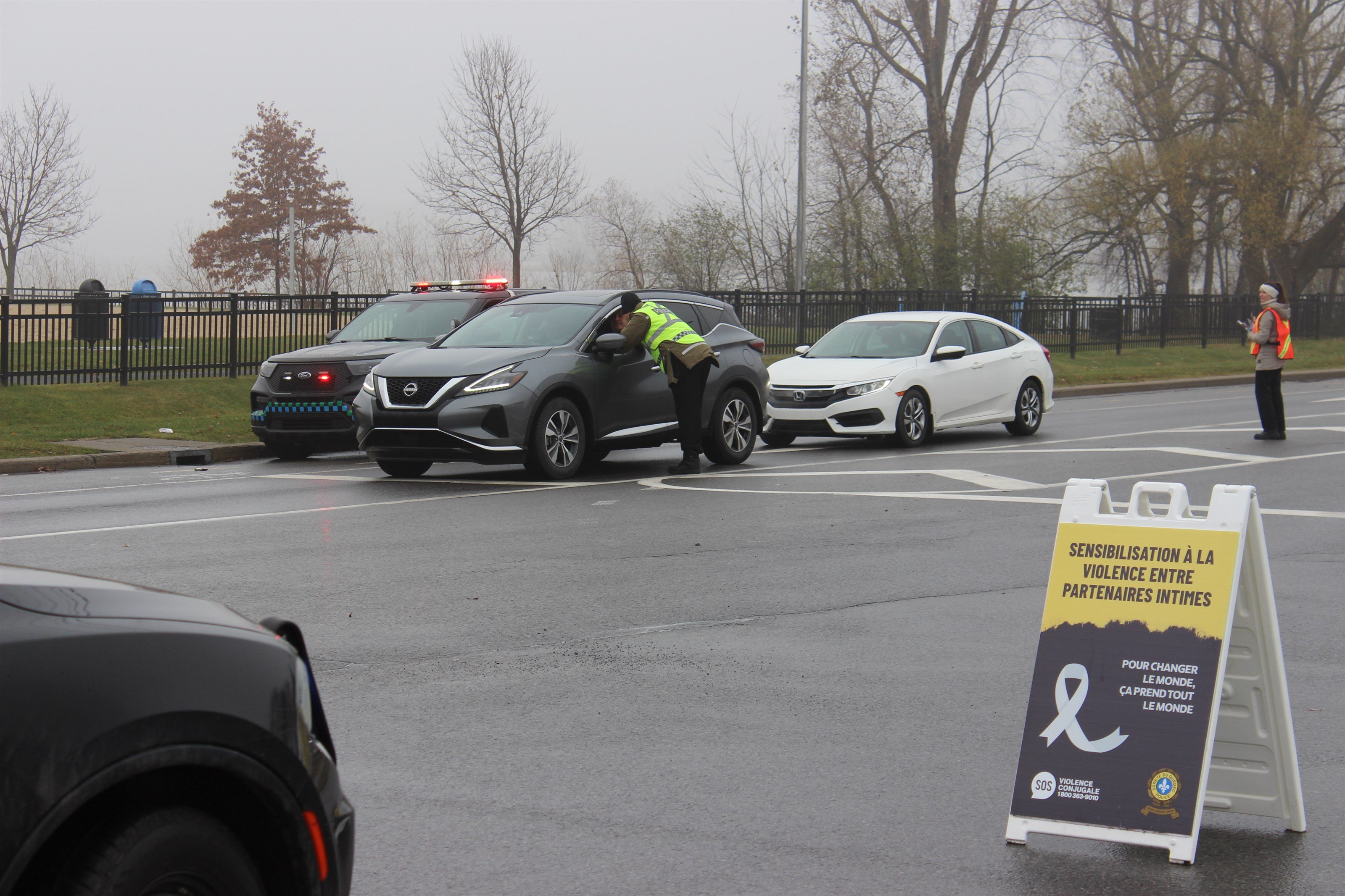Pour une période d’environ deux heures entre 10 h et midi ce mercredi, les policiers de la SQ accompagnés de bénévoles et d’agents de la patrouille municipale de Vaudreuil-Dorion ont accosté les automobilistes qui passaient sur l’avenue Saint-Charles à la hauteur de la rue Paul-Gérin-Lajoie.
