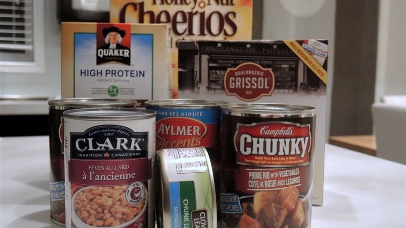 Denrées acceptées : pâtes alimentaires, fruits et légumes en conserve, tartinades du commerce, papier hygiénique, savons, etc.