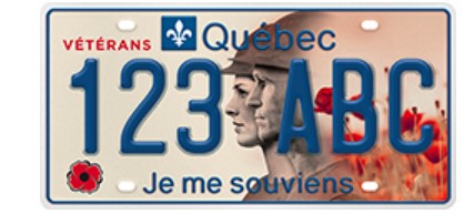 Saviez-vous qu’il est possible, au Québec, d’avoir une plaque d’immatriculation personnalisée si on est un vétéran ou un ancien combattant? Cette exclusivité est offerte uniquement aux intéressés qui en font la demande auprès de la Légion royale canadienne pour leur véhicule déjà immatriculé.
