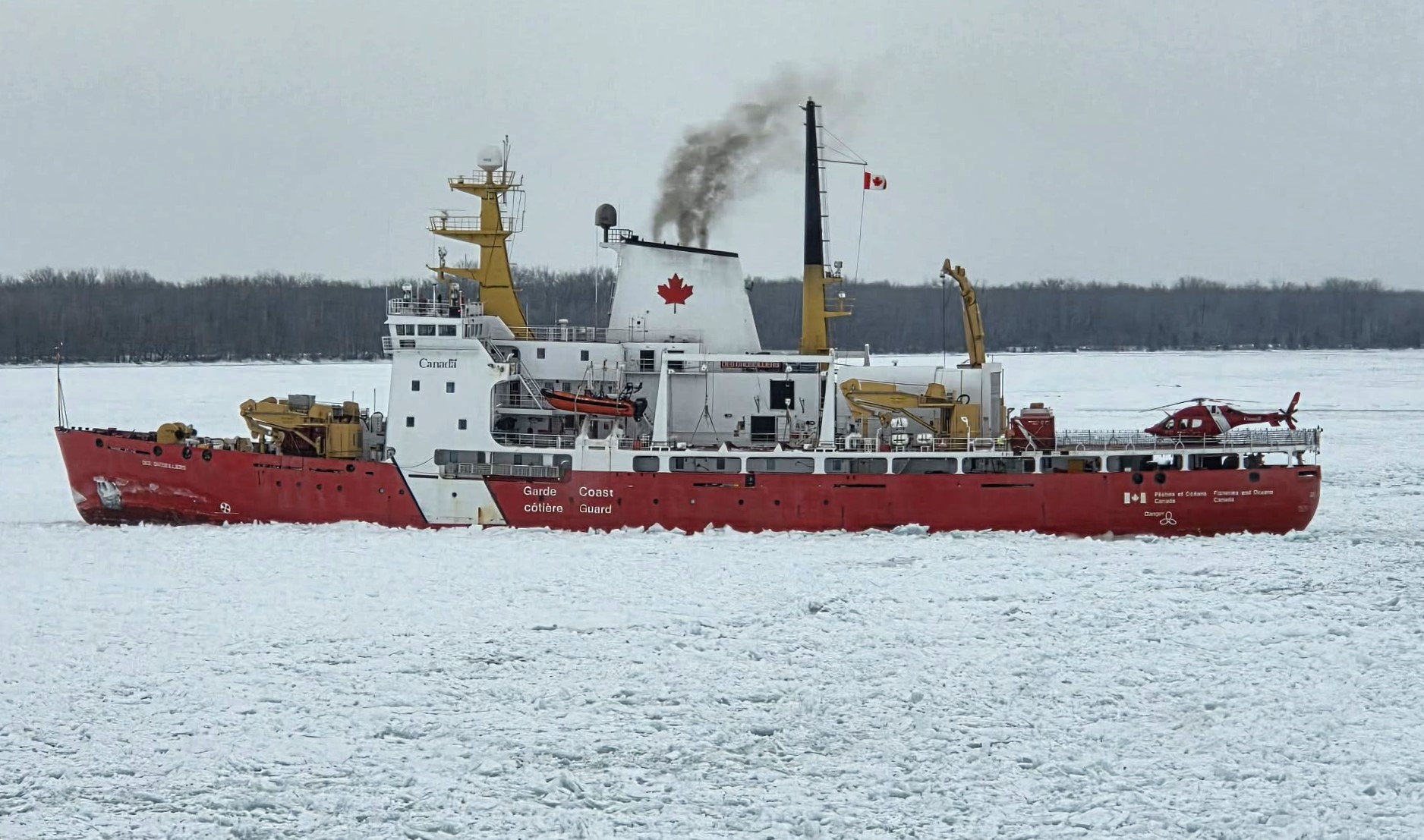 L’intervention du brise-glace de la Garde côtière canadienne des Groseilliers a été nécessaire afin de dégager une voie navigable et de permettre aux bateaux de reprendre leur course.