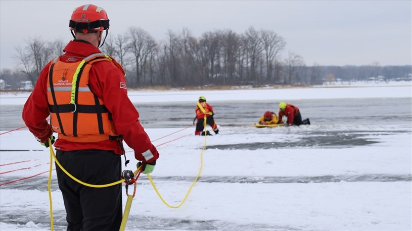 Ces exercices de formation permettent aux pompiers d’assurer des interventions sécuritaires et efficaces lors de situations d’urgence sur les plans d’eau gelés.