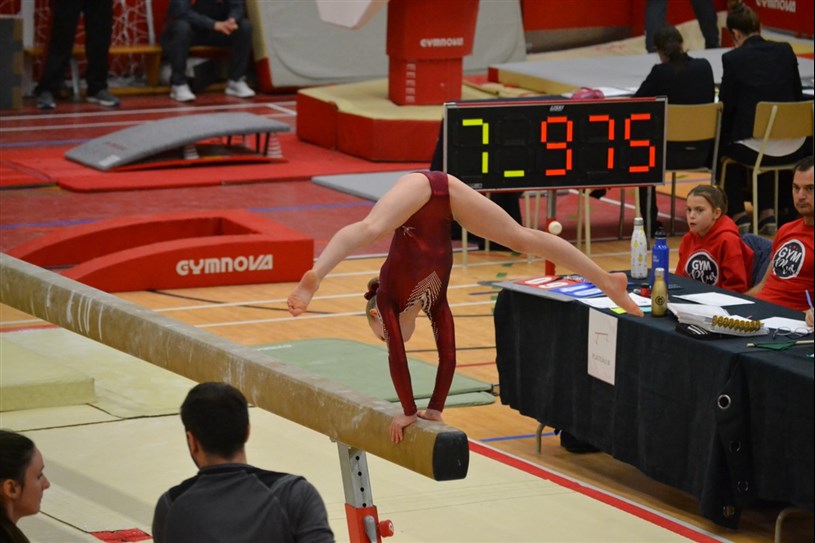Magalie Vallée ( JO9 14-15 ans) s'est classée en 4e position pour sa routine sans chute à la poutre. Elle a réussi pour la première fois en compétition son saut de mains salto avant à la table de saut ainsi que son changent de barre avec salto pour les barres.