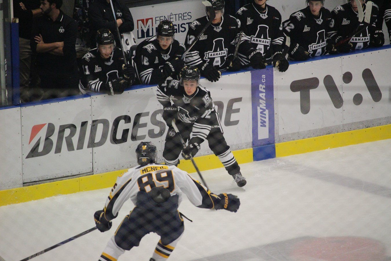 En fin de semaine dernière, l’Armada disputait deux matchs en deux soirs. Le vendredi 26 septembre, ils ont défait les Cataractes de Shawinigan par la marque de 4-1 puis le lendemain, c’était au tour des Tigres de Victoriaville de goûter à la puissance de frappe de l’Armada qui l’a emporté 8-4.