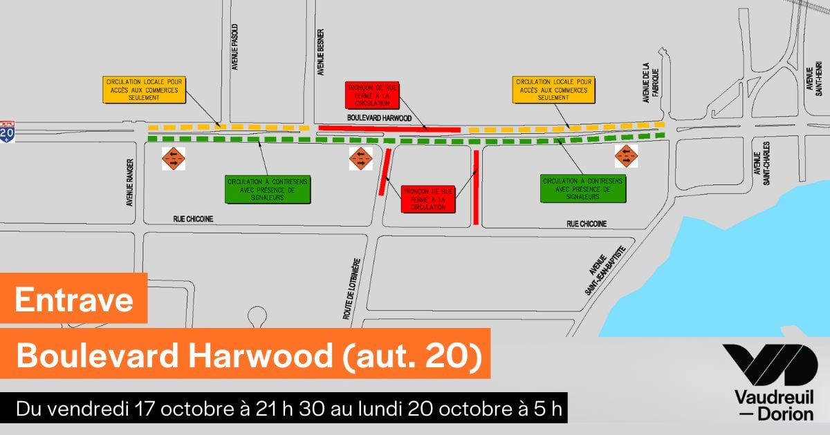 Durant cette période, la circulation sera maintenue, mais s’effectuera à contresens dans les voies en direction est du boulevard Harwood. La Ville précise que l’accès aux commerces demeurera possible en tout temps. Une signalisation temporaire ainsi que des signaleurs seront déployés sur place afin d’assurer la sécurité des automobilistes et la fluidité du trafic.