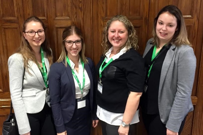 Audrey Lessard, Amélie Mongeau et Marie-Carmen Dallaire, accompagnées de leur enseignante et entraîneuse Charlène Poirier, lors la Compétition provinciale de gestion de cas en avril.
