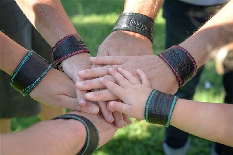 Signé Créations ZÖ, les produits sont tous fait de cuir recyclé, avec le logo embossé et des appliqués géométriques cousus à la main aux couleurs de la Fondation. Le prix des bracelets pour adulte est de 20 $. Tandis que les bracelets pour enfant et les porte-clés sont vendus à 10 $. La somme de 2 $ par accessoire vendu est remise à la campagne de financement 2016-2018 de la Fondation permettant la rénovation des 7e et 8e étages de l’Hôpital du Suroît où plus de 3 700 adultes y sont hospitalisés annuellement.