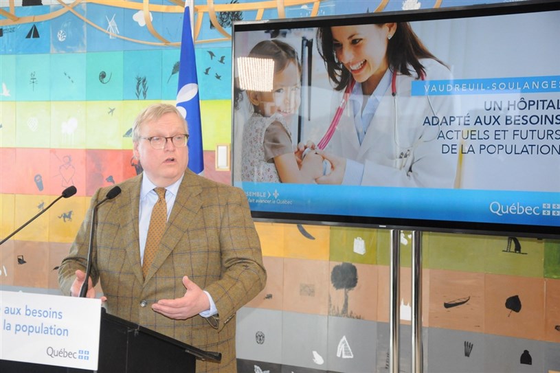 C’est un hôpital de 404 lits, 10 salles d’opération, une urgence pouvant accueillir 41 civières et au montant de 1,5 G$ que le premier ministre du Québec, M. Philippe Couillard, le ministre de la Santé et des Services sociaux, M. Gaétan Barrette ainsi que les députées de Soulanges et de Vaudreuil, Lucie Charlebois et Marie-Claude Nichols, ont présenté, le 22 mars dernier, dans les locaux du Centre intégré de santé et de services sociaux de la Montérégie-Ouest (CISSSMO) .