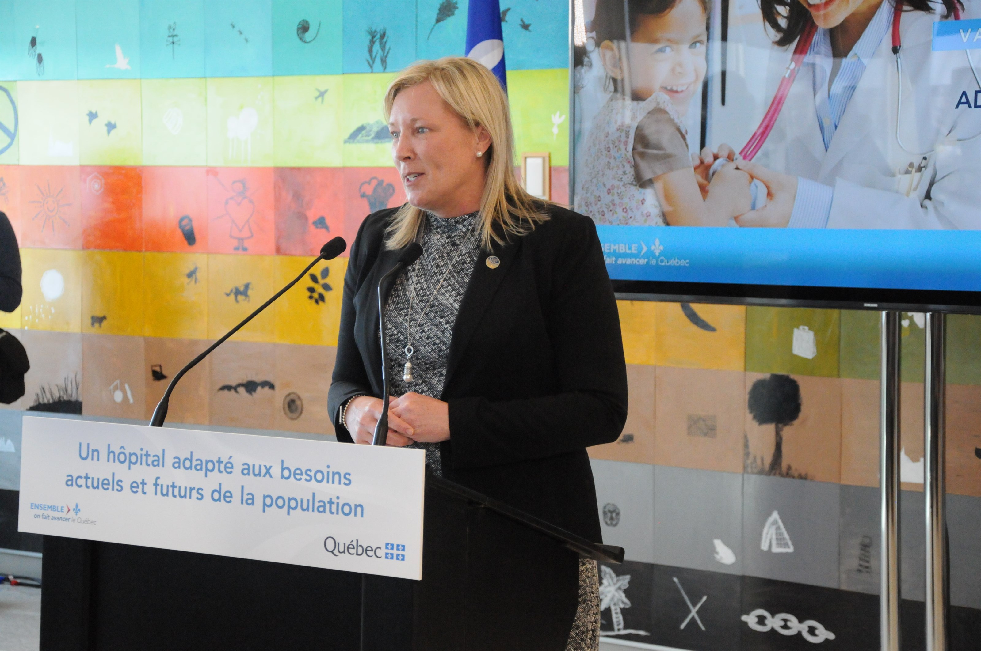 « Je sais à quel point le futur hôpital est important pour la population et, d'ici quelques années, elle aura une installation de santé de qualité et facile d'accès, ce qui est souhaité depuis longtemps. Aujourd'hui, je crois que nous venons clairement démontrer que notre gouvernement est déterminé à réaliser ce projet essentiel, qui se fera au bénéfice de la population de la Montérégie. Je suis aussi heureuse de confirmer que l'Hôpital du Suroît, qui dessert notamment la population de Vaudreuil-Soulanges, conservera sa mission actuelle. Soyez assurés que je continuerai à suivre ce dossier majeur de près », poursuit-elle.