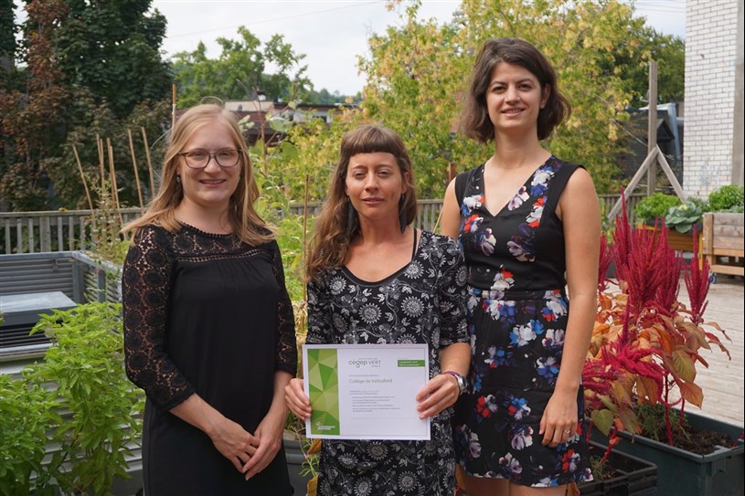 C’est avec beaucoup de fierté que, le 6 septembre dernier, le Collège de Valleyfield a reçu sa certification Cégep Vert niveau 3 par l’organisme ENvironnement JEUnesse. Une mention spéciale lui a même été décernée pour un projet alliant l’engagement social dans la communauté et l’environnement.